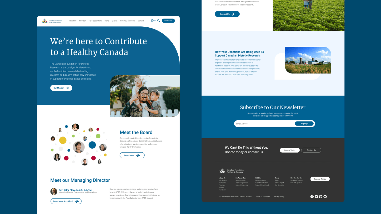 In Spring 2022, the Canadian Foundation for Dietetic Research (CFDR) approached MAKE with a dual task: modernizing its brand and completely revamping its website. CFDR wanted to take its brand into the modern era while maintaining its core identity. They also needed a new, user-friendly website that would effectively communicate their mission and values, providing an intuitive experience for donors and grant applicants alike. The mission was clear: a complete brand and web facelift, giving CFDR a cohesive visual identity and digital platform that would distinguish them from competitors and allow them to reach a wider audience.
